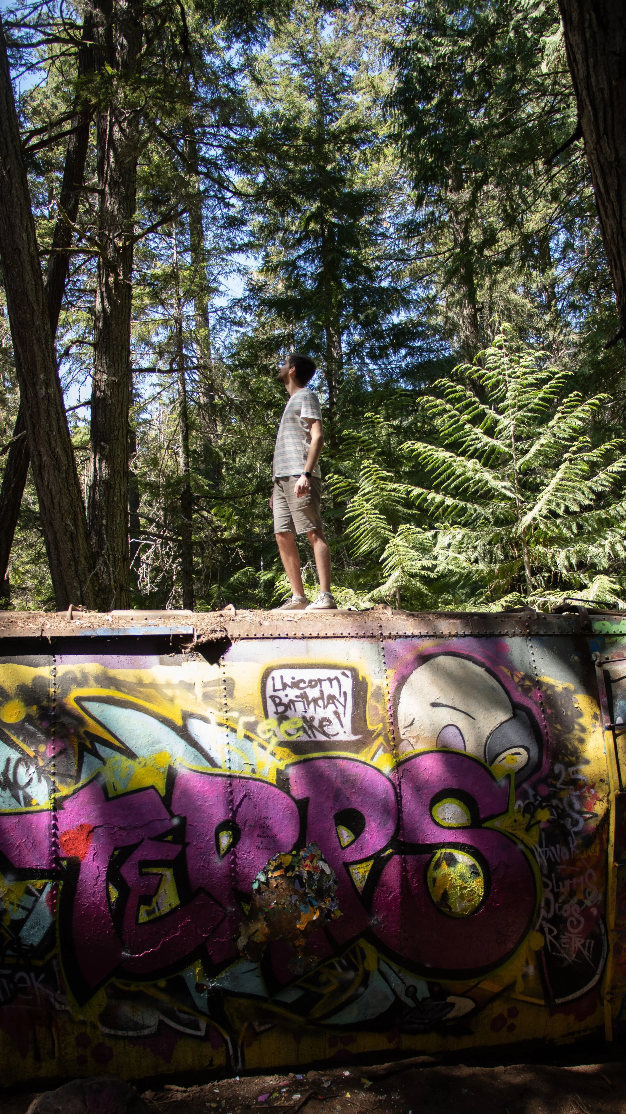 Another forest walk that lead to an abandoned train. These box cars have been here since 1956! They derailed due to excessive speed on tracks that were under repair. It was too expensive to get them back up/repair them so a local logging company was hired to move them, dragging them into the forest where they’ve been ever since.